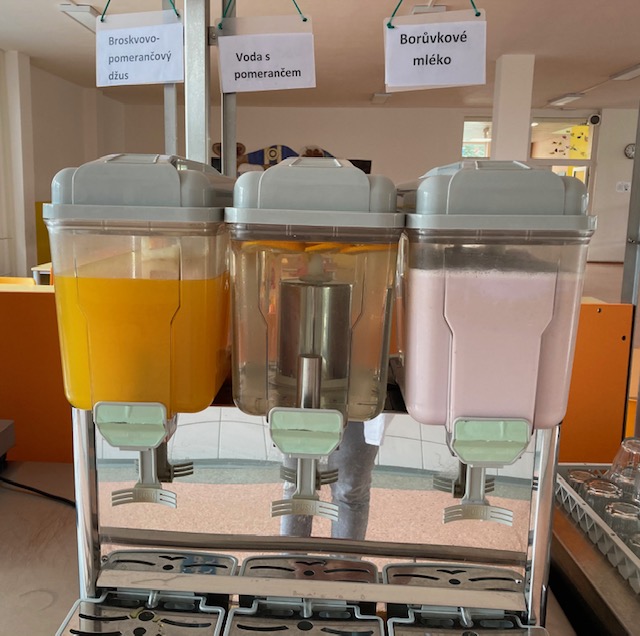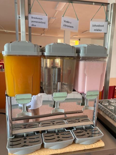 Děti mají k pití každý den čistou vodu, občas ochucenou citronem, pomerančem, grapefruitem nebo dokonce i čerstvou mátou, vypěstovanou našimi dětmi na školní zahrádce. Také je alespoň 3 krát týdně ochucené mléko a podle počasí ledové nebo teplé čaje, ovocné džusy nebo 100% mošty.