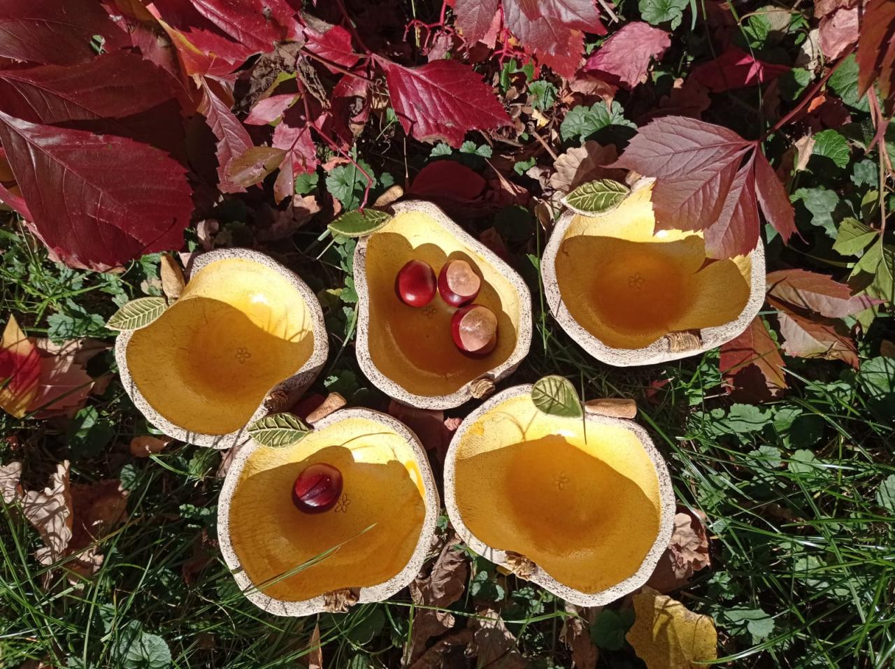 Podzim se svými nádhernými barvami a tvary je pro nás velkou inspirací. Děti pracují s chutí a těší se na každé otevření pece s novou várkou hotových výtvorů.