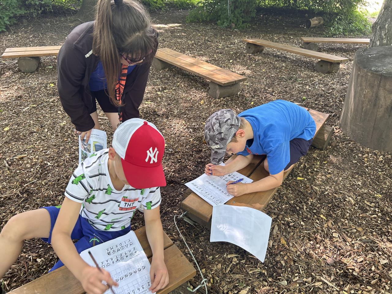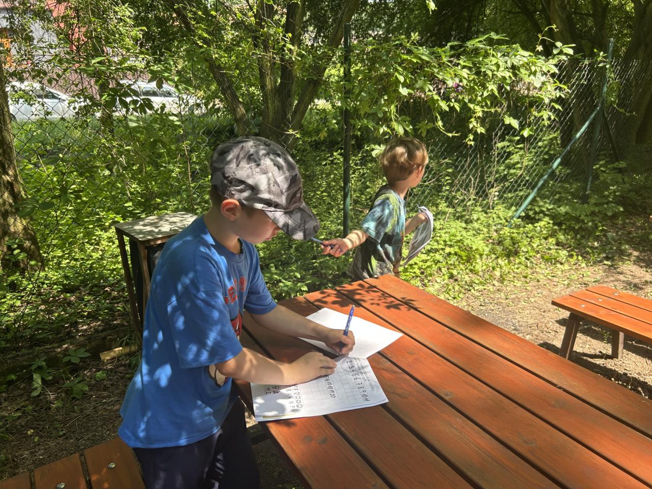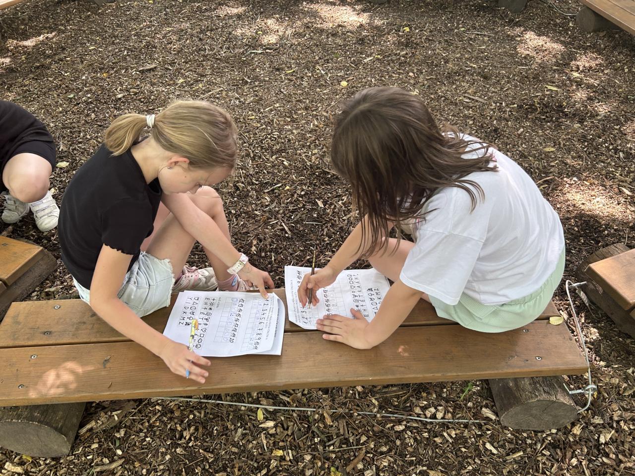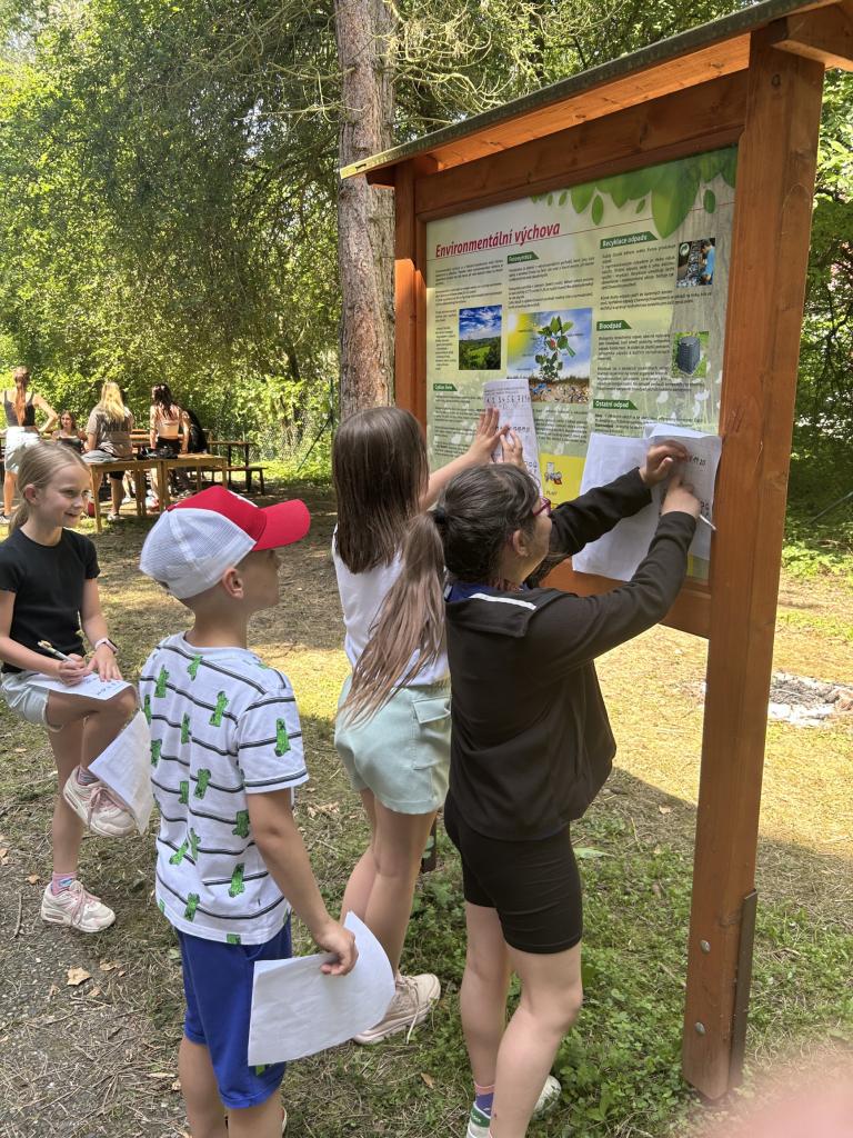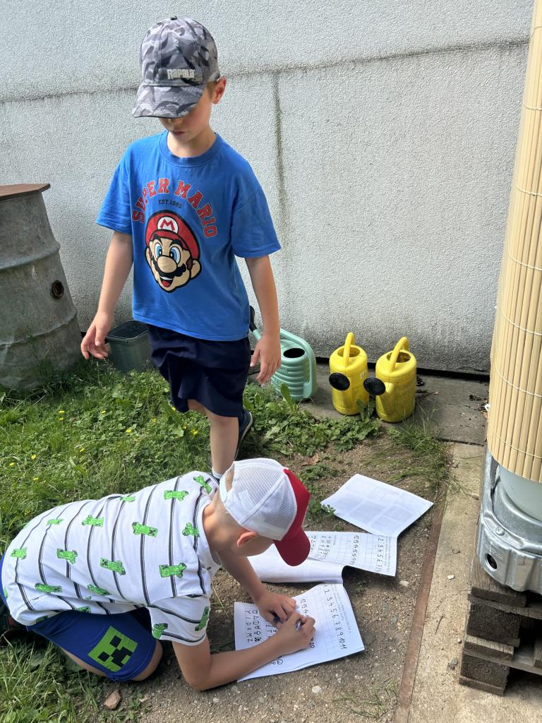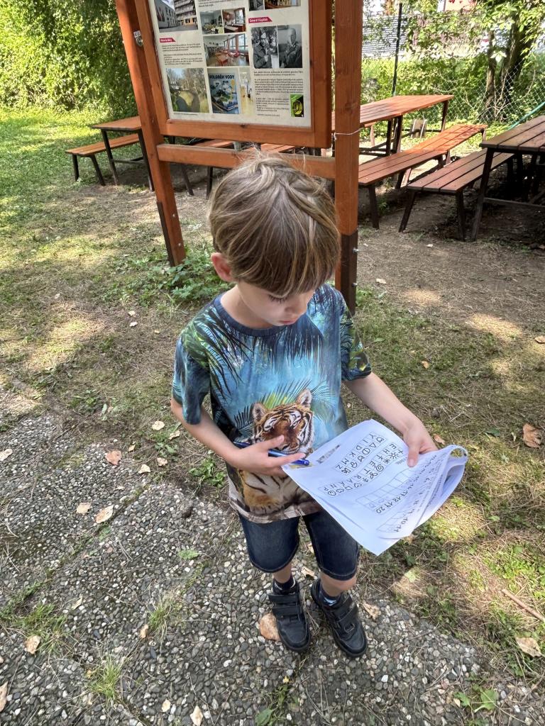 Na poslední schůzce si děti zahrály velkou šifrovací hru. Na školní zahradě hledaly lístečky se znaky, které byly umístěny na různých místech zahrady, např. v hmyzím domečku, pod krmítkem, v dutině stromu, na cedulích, různých přírodninách, schodech, apod. Znaky našly pomocí obdržených fotografií všech dvaceti úkrytů. Nakonec z ,,ulovených" indicií vyřešily šifru podle šifrovacího klíče. Z dnešní schůzky děti odcházely s pamětním listem a s pěknými vzpomínkami na rozmanité činnosti kroužku. Hezké prázdniny!