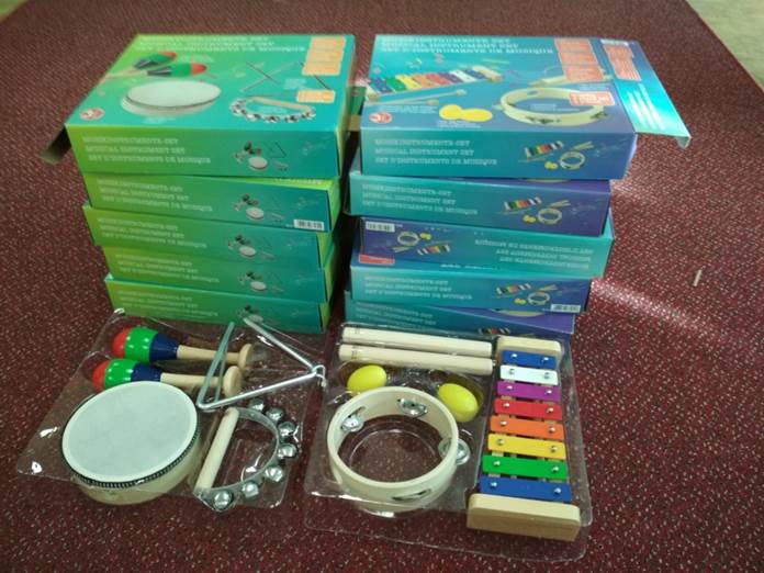 Byly zakoupeny dvě sady hudebních nástrojů pro využití v hodinách hudební výchovy na 1. stupni. Cena jedné sady je 5 950 Kč, druhá sada stála 2 990 Kč.